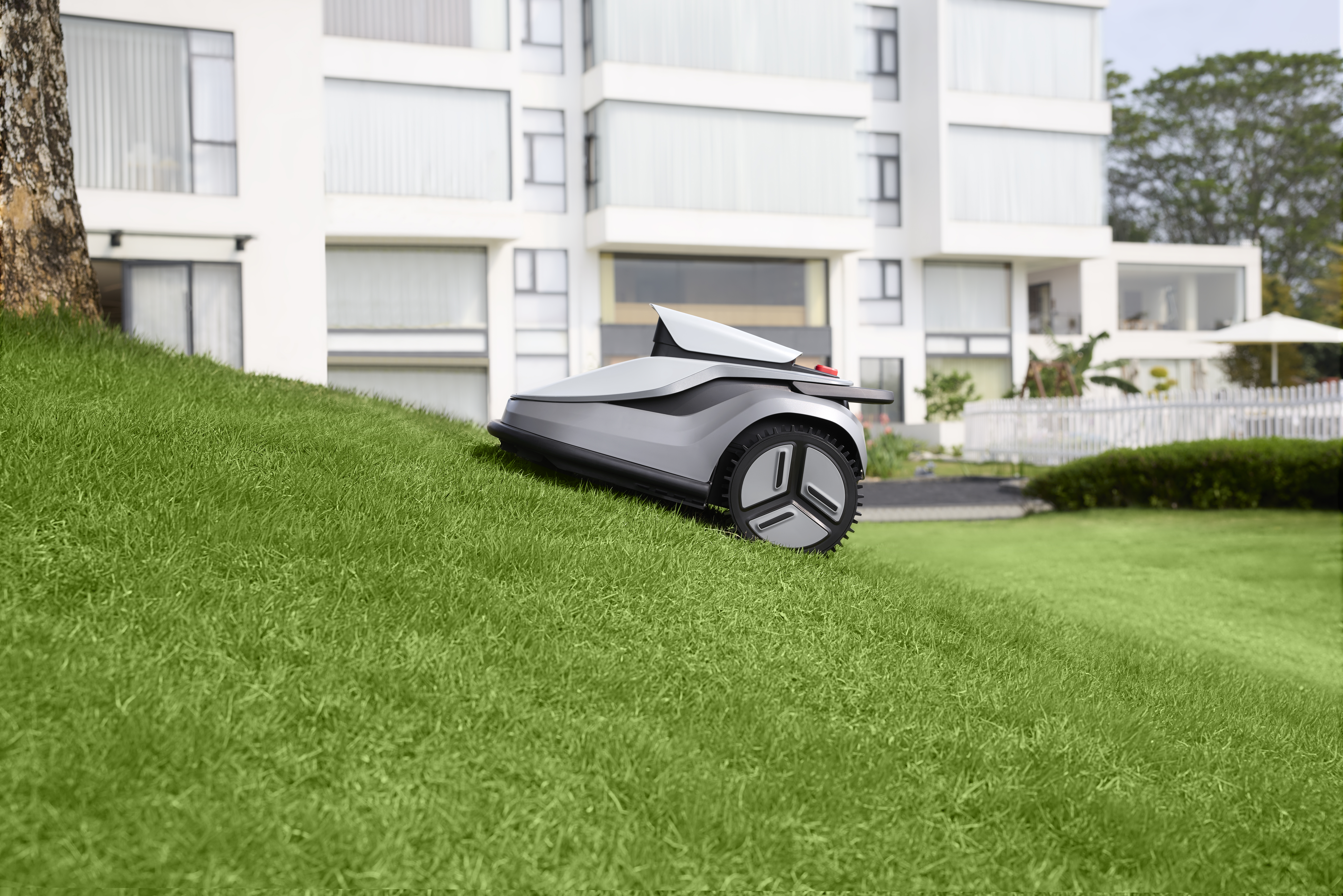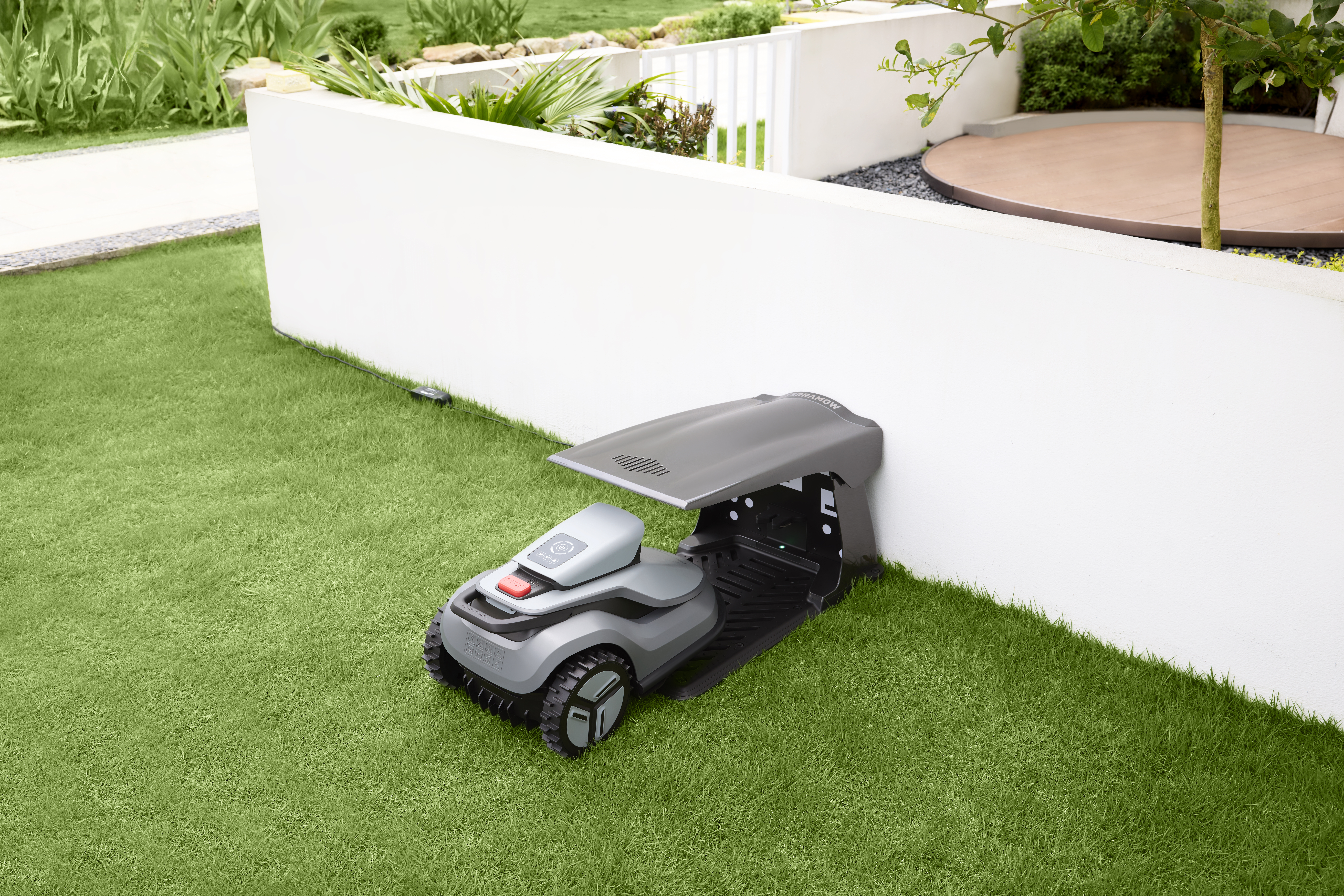 - Mästare på komplexa trädgårdar: TerraMow är den perfekta lösningen för komplexa trädgårdar. Genom att planera optimala vägar och undvika 3D-hinder i realtid levererar den exceptionella klippresultat även på gräsmattor fyllda med blomrabatter, oasfalterade kanter, buskar och under träd. Dess smidighet gör att den kan navigera genom smala passager så trånga som 60 cm.